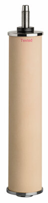 Microporous ceramic with firmly embedded silver reliably retains suspended particles, all harmful bacteria, and parasites such as Cryptosporidium and Giardia down to 0.2 microns in size. Silver quartz gravel inside has a disinfecting effect and inhibits recontamination during prolonged periods of non-use. Katadyn ceramic produces fresh drinking water without the use of chemicals. The filter is mechanically regenerable and therefore reusable.