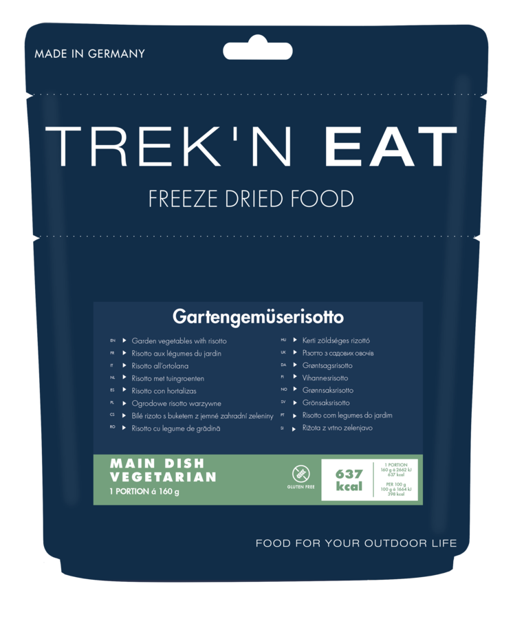 Fava beans have very few calories and yet provide many valuable minerals, such as potassium, calcium and magnesium. They also contain important dietary fibres for good digestion. Consequently, they form an important part of a well-balanced diet for vegetarians. Trek’n Eat’s Garden Risotto is a great alternative to the conventional rice-based risotto originating in Northern Italian cuisine. This Trek’n Eat risotto version owes its pleasant bite to crunchy garden vegetables, such as carrots, tomatoes, peas and onions
