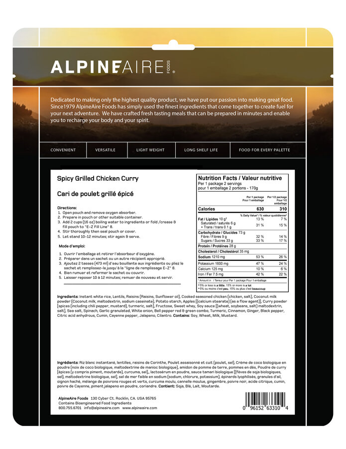 Rice and lentils with currants and apples combine with curry and seasonings to deliver a delicious balance of sweet, savory and spiciness. This ultralight freeze-dried meal is ideal for backpacking, search and rescue, wilderness survival and emergency preparedness.