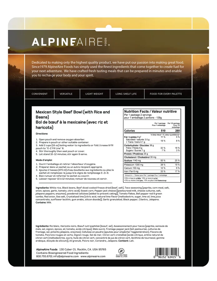 Seasoned beef, corn, beans and rice with zesty lime and pepper jack cheese.
