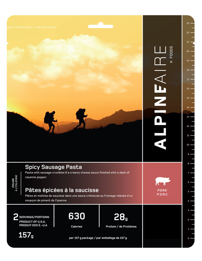 A robust red sauce with herbs and parmesan cheese paired with spiral noodles and pork sausage.