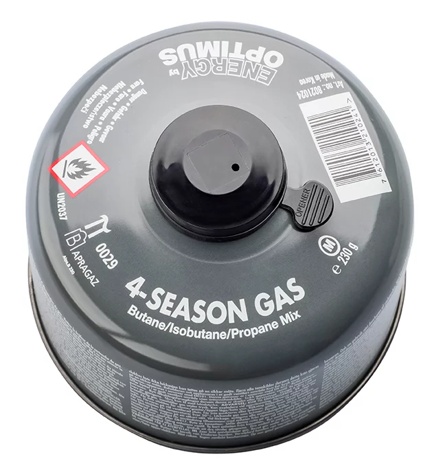 The 4-Season Gas by Optimus keeps outdoor stoves running perfectly in all seasons. The high-quality gas mix consists of propane, butane, and an increased amount of isobutane, which features a particularly low boiling point. As a result, the 4-Season Gas delivers the same stable performance at near-freezing temperatures and high altitudes that users expect in milder conditions.