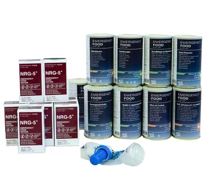 1 month package - vegetarian provides food for one person for 1 month. Our vegetarian menus are made from high quality freeze-dried ingredients. This preserves vitamins and minerals. All cans have tear-off lids and can be resealed with the accompanying plastic lids. The meals are filled in 1.2-liter cans under vacuum and nitrogen. This ensures a long-term shelf life of at least 15 years.