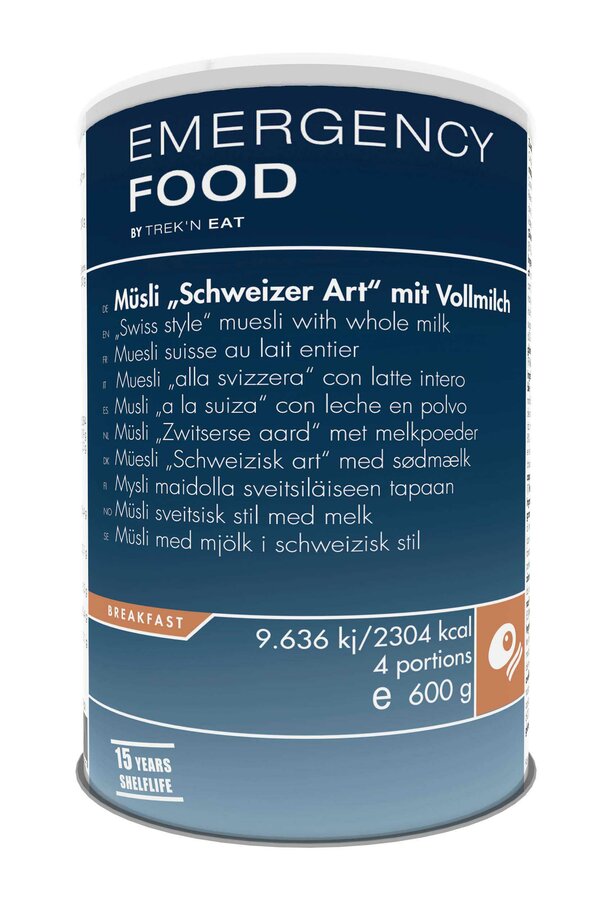 Indispensable on adventure travel and tours in faraway lands for muesli fans is the Emergency Food Swiss Muesli with Milk. Switzerland is in fact the birthplace of muesli. Originally, Swiss muesli was served less often as the classic breakfast as it was for a light meal. For example, in its homeland, it was frequently served as an additional delicacy along with the evening meal. And Emergency Food’s Swiss Muesli with Milk has everything that characterizes the classic version: apples for a dash of fruit delight, hazelnuts for a complete and wholesome bit of raw crunch. Not just for fans of the Swiss specialty, the Emergency Food Swiss Muesli with Milk is well-suited for an ideal breakfast or it can also step up as a simple and satisfying meal when mealtime is better suited for a cold dish.