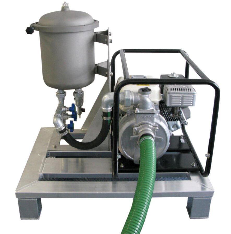 Mobile filter unit with 7 self-disinfecting filter elements. The micro-porous filter elements of Katadyn ceramic have an average pore size of 0.2 μ = 0.0002 mm. They safely remove from the water suspended solids and agents of water borne diseases such as typhoid, dysentery, cholera, amoebic, giardiasis and cryptosporidiosis. Safe and reliable disinfection as well as clear filtration of water, therefore double function in the same system and process. Ecological and simple process without the use of chemicals. The natural taste and mineral content of the water are retained. The effectiveness is independent of the water quality. The filter elements are easily regenerated by simple brushing of their surface. This means long life span and therefore cost-effective operation. The filter elements are suitable for operation after ozone. Price upon request.