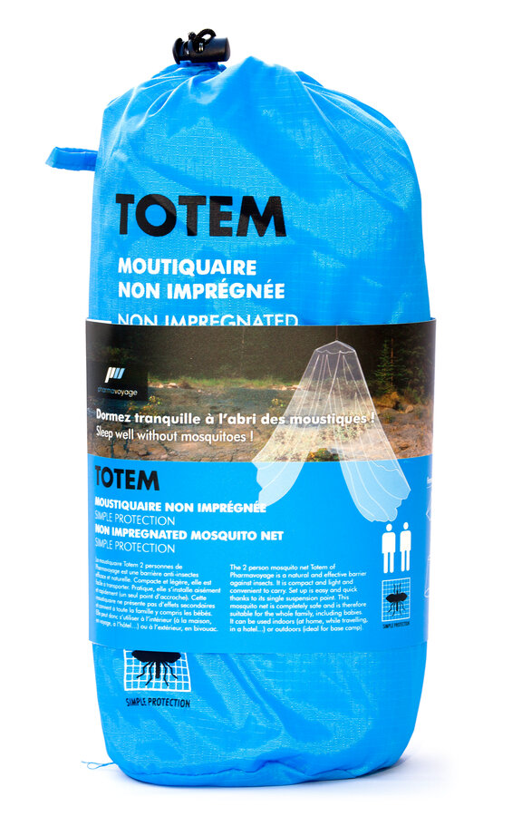 Das Moskitonetz Totem ist nicht imprägniert und kann für zusätzlichen Insektenschutz mit dem Imprägnierspray Biovectrol Tissu von Pharmavoyage kombiniert werden.