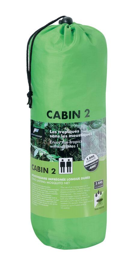 Thanks to its impregnation technology, the Pharmavoyage mosquito net is a so-called «long-lasting» mosquito net (270 mg perme-thrin) and is very resistant (75 denier). The use of an impregnated mosquito net is recommended by WHO in order to protect against certain insect-borne dis-eases: malaria, dengue, chikungunya, etc. Suitable for use with a double bed. Ideal for camping. Six hook points.