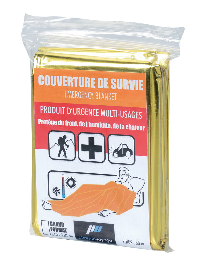 Compact and lightweight, it fits easily into a backpack. A must for expeditions or autonomy travels, the emergency blanket is also useful for family walks or for use in any kind of transportation (car, boat,...)