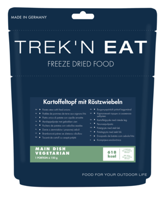 If you are longing for a hearty vegetarian meal, this Potato Stew with Fried Onions is a must in your pack or bag. Crisp roasted onions are what give this dish its special pizzazz. Potatoes and soya ensure that not only are tastebuds satisfied but your hunger is satiated too. When it’s time for a hearty and substantial entree, this Potato Stew with Fried Onions is your ideal companion on any outdoor adventure.