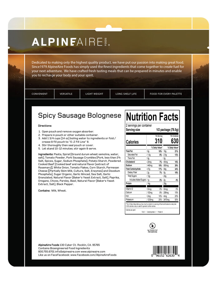 A robust red sauce with herbs and parmesan cheese paired with spiral noodles and pork sausage. Sure to fill up even the most intrepid explorer!