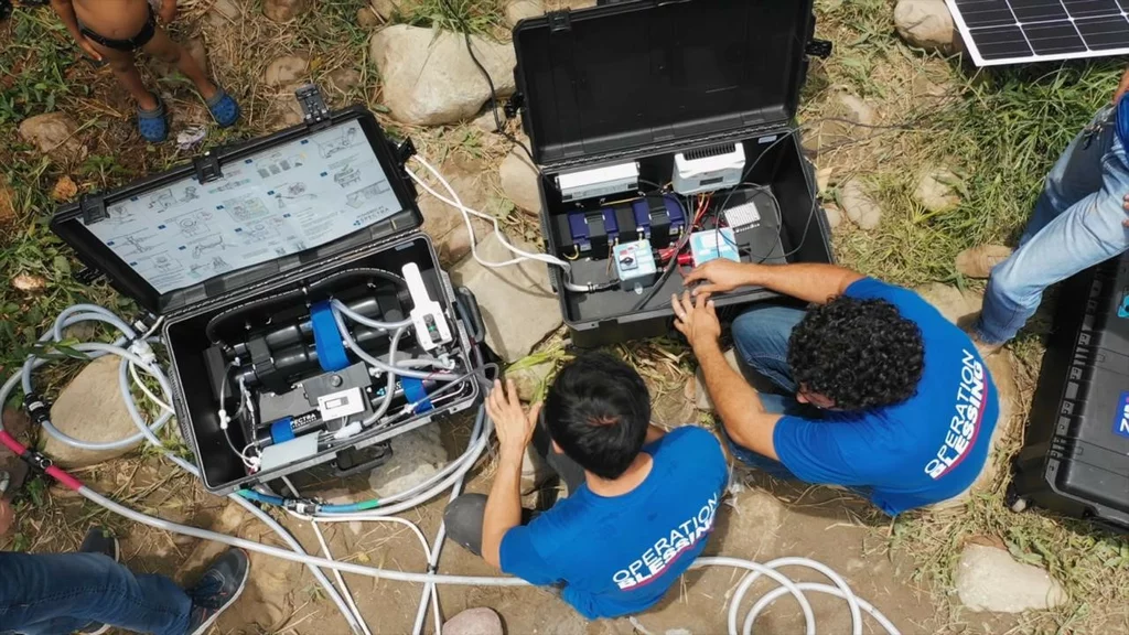 The second solution was the Spectra Universal Aquifer. Operation Blessing used the Aquifer when large quantities of water were needed in remote, off-grid locations with no power source. The Aquifer is a rugged watermaker that can deliver up to 360 gallons of fresh water per day from any water source, including sea water. It runs entirely on three included solar panels and is packed into three military-grade cases that can be checked as luggage on a commercial flight. Aquifer units deliver fresh water quantities that exceed a full pallet of bottled water per day, without the negative environmental impact and difficult shipping logistics.